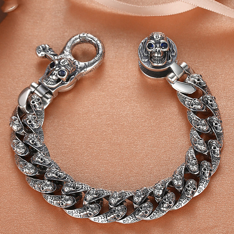 Trendy Vintage Skull Bracelet in Sterling Silver for Men