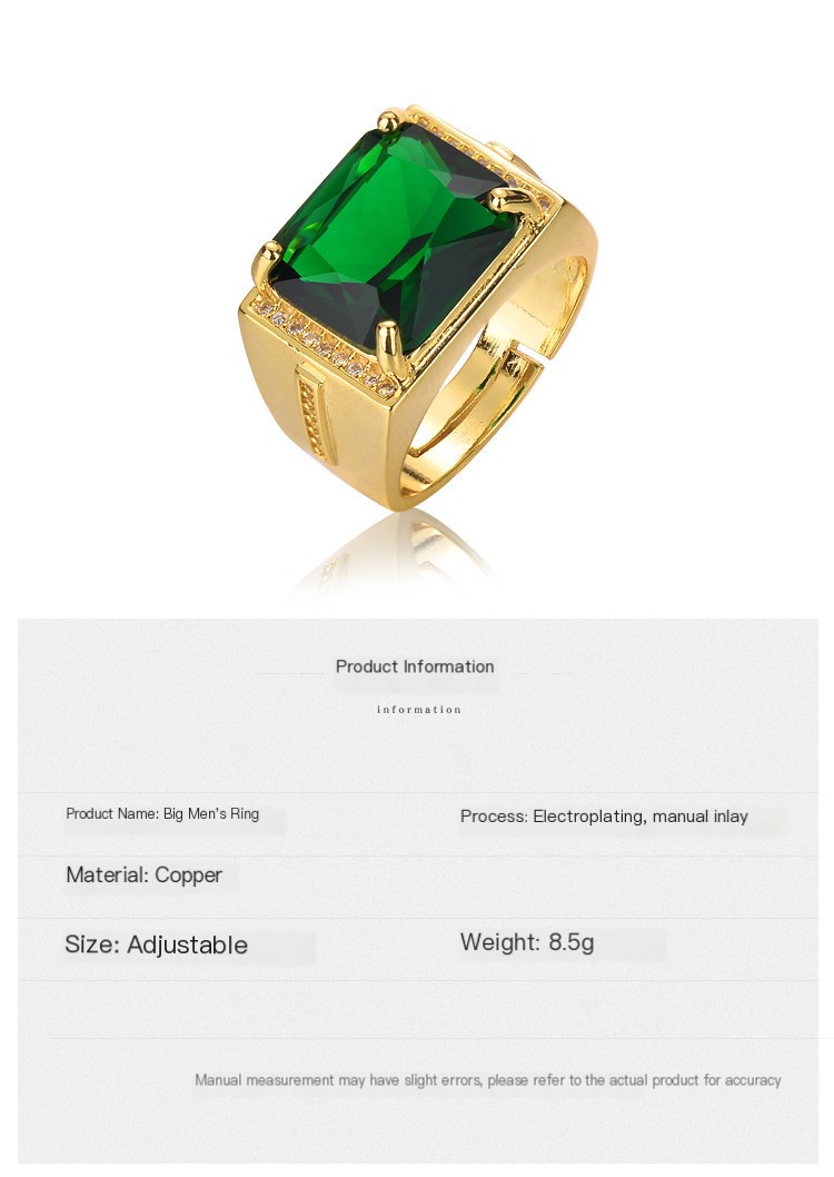 Vintage Green Emerald Square Ring for Men (Gold Plated)